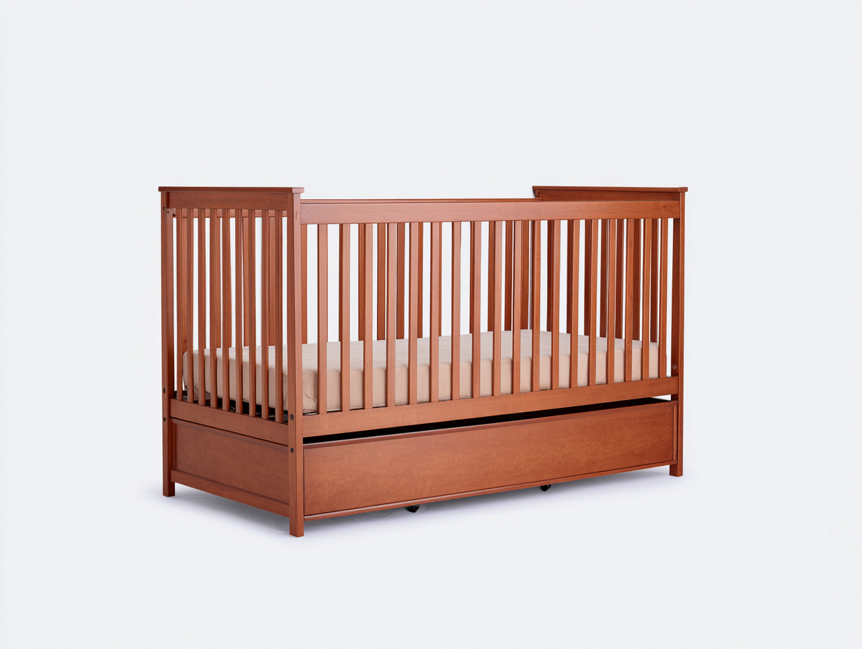 Culla in legno con cassetto inferiore scorrevole - 126x67x100 cm - marrone - per camera dei bambini - design classico