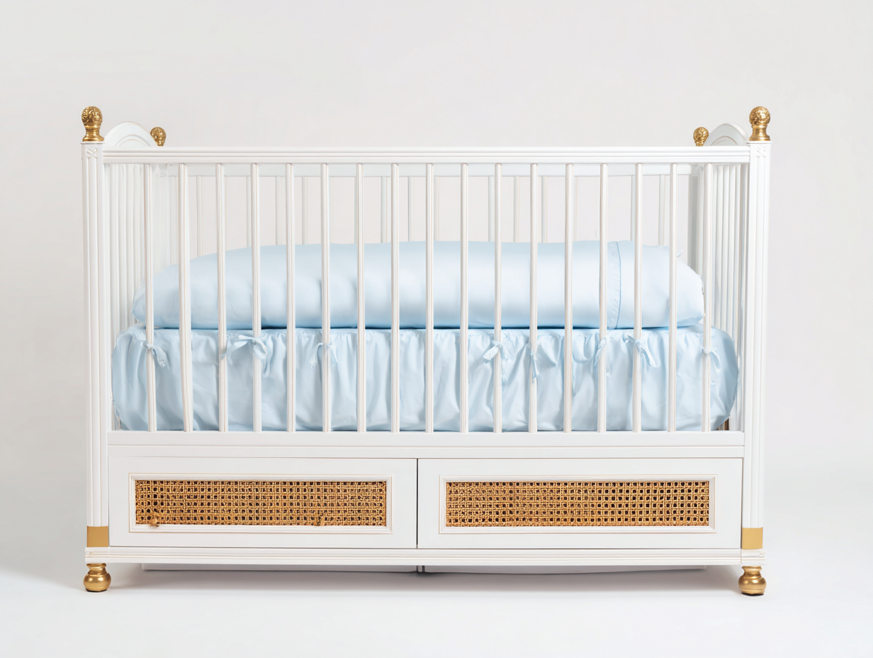 Culla in legno con pannelli in rattan e cassetti inferiori - 127x68x104 cm - bianco e naturale - per camera dei bambini - design classico elegante