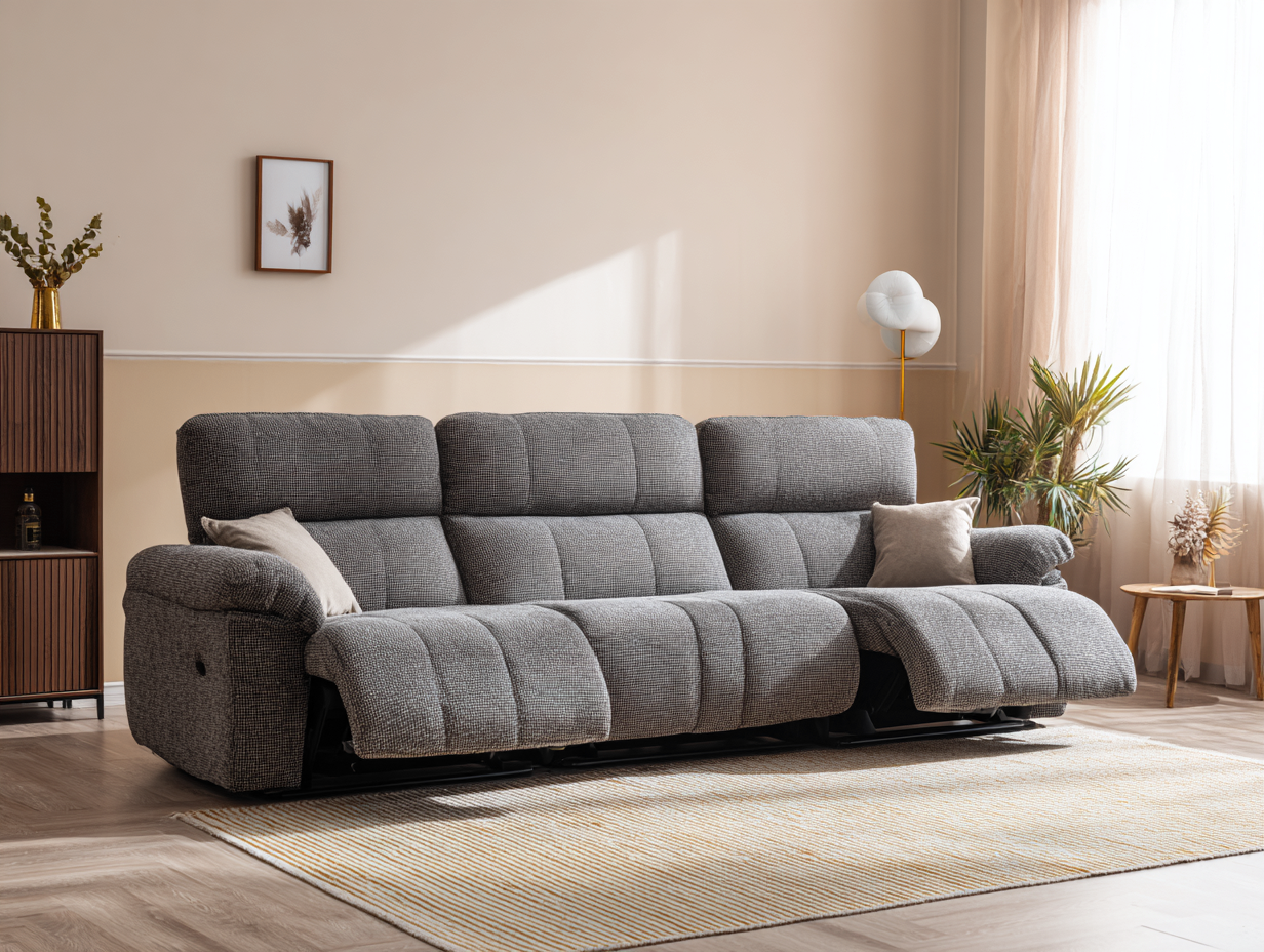 Divano 3 posti reclinabile - rivestimento in tessuto - 210x95x100 cm - grigio - soggiorno - design moderno