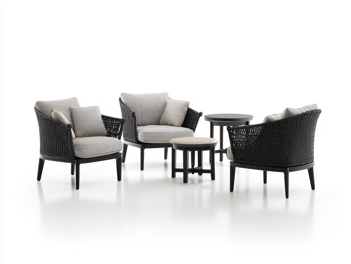 Set tavolo e sedie da giardino-rattan intrecciato e metallo-Sedia 80x75x78 cm-Tavolino 60x60x55 cm-Tavolino 40x40x45 cm-nero beige-design moderno per esterno